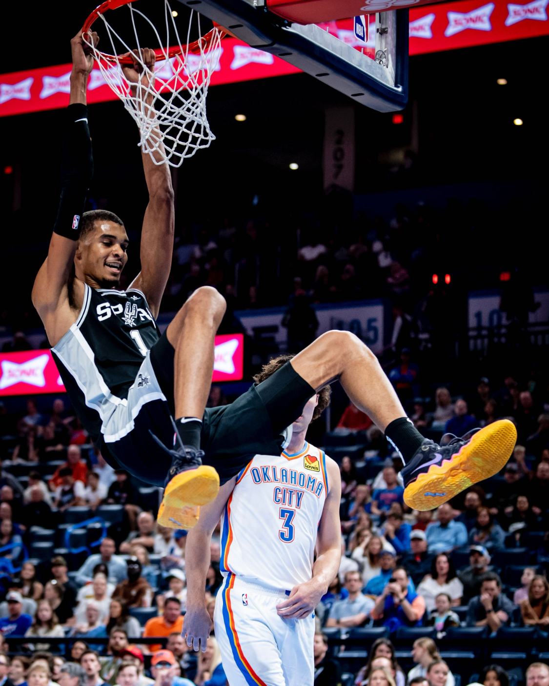 文班的生涯最高分是50分,马刺队史单场最高是大卫-罗宾逊的71分。他才21岁,未来有无数纪录等着他去打破。